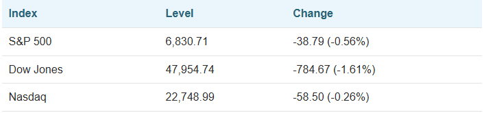 A sudden global tariff shock and intensifying concerns about AI disruption sent shockwaves through financial markets today. Investors scrambled out of equities and crypto, fueling a sharp rally in gold and Treasuries as risk aversion reached its highest levels in months. With volatility spiking and sector leaders tumbling, the market narrative has shifted decisively toward caution, capital preservation, and a reevaluation of growth prospects. Key Market Themes: Tariff Turbulence: Sweeping new...